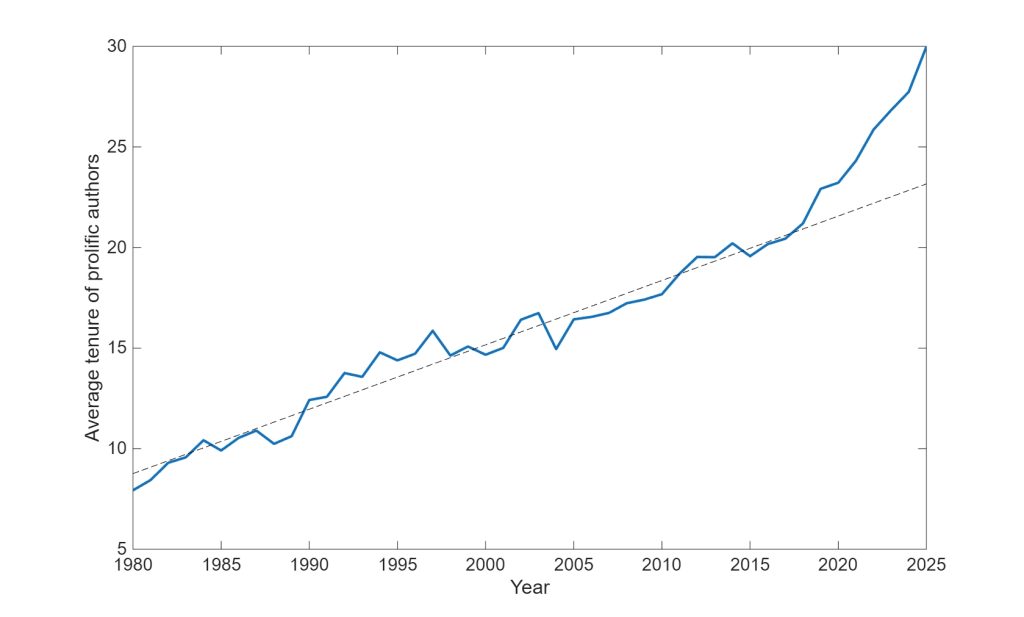 Figure 4: Average tenure of prolific authors over the years